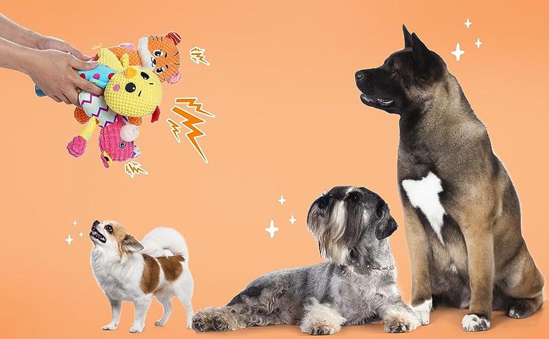 - Built-in Squeakers and Crinkle Paper: Each plush dog toy is equipped with built-in squeakers and crinkle paper, making funny sounds when pets play with them, attracting their attention and enhancing their interest and interactivity.