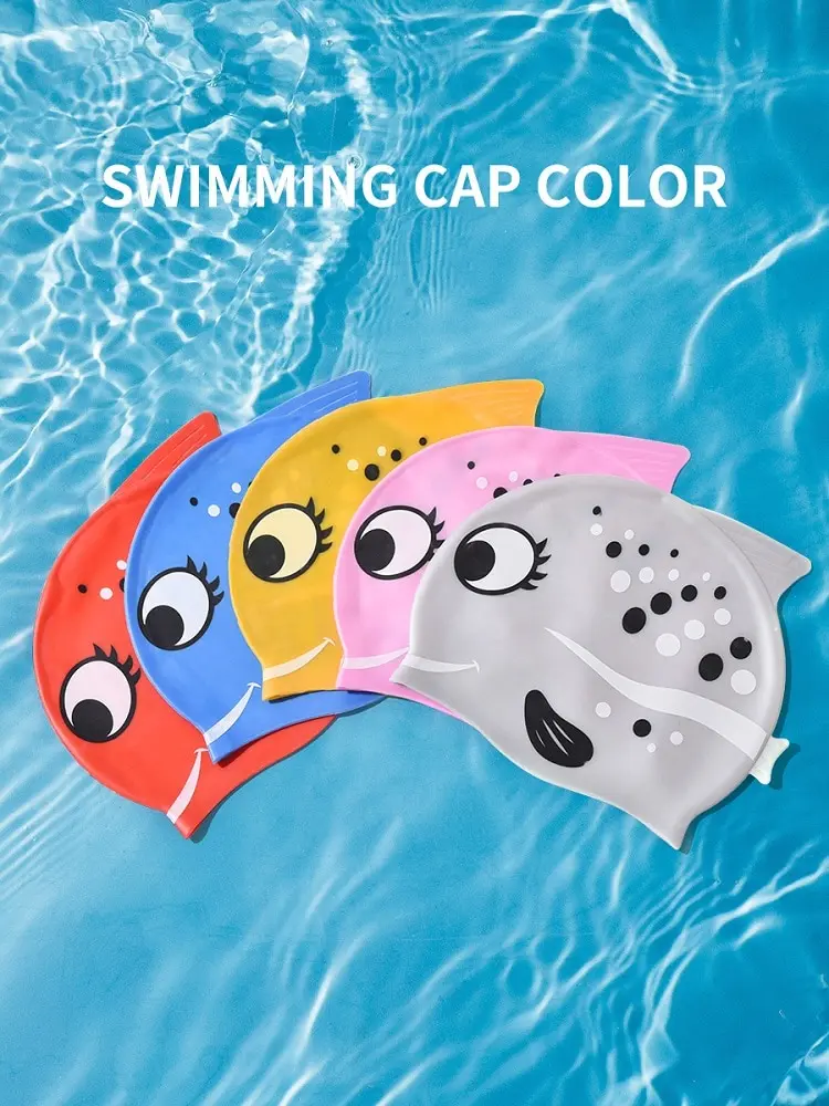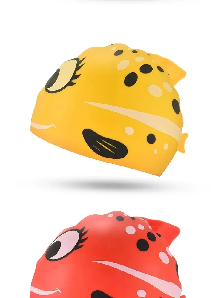 New Children Silicone Waterproof Fashion Cartoon Spot Fish Swimming Cap