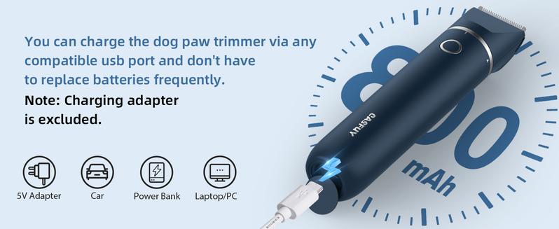 【USB Charging】- This dog grooming clipper is built-in rechargeable lithium battery, can be used for 1.5 hours after being re-charged for 90 minutes by phone adapter, computer, power bank, etc. USB charging cable is provided, not the power adapter.