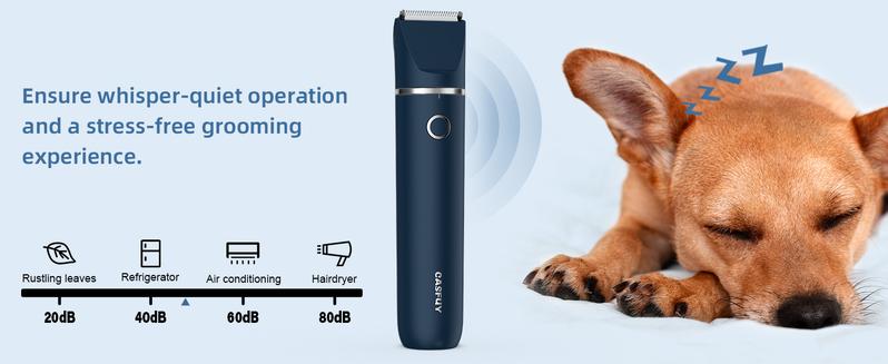 【Low Noise & Vibration】- Equipped with a superior motor, this pet hair clippers produce high speed and less vibration, effectively control the noise within 50dB when working, ensuring that your pet feels comfortable throughout the grooming process, without causing any discomfort.